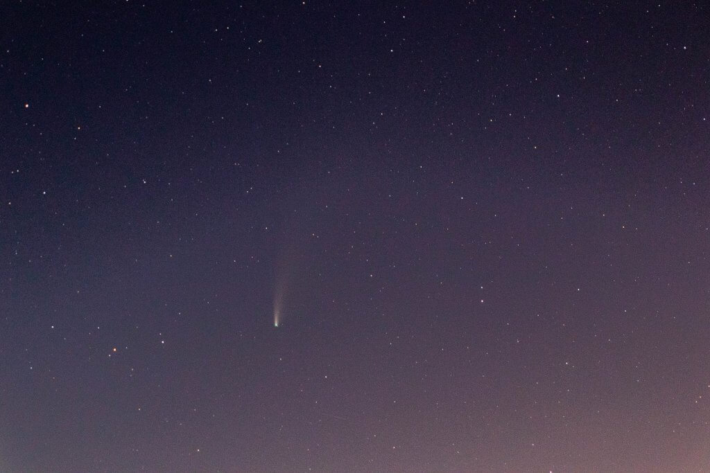 Ám az alábbi fotó álljon itt bizonyítékként, hogy megfelelő beállításokkal és némi utómunkával láthatóvá tettük NEOWISE-t.